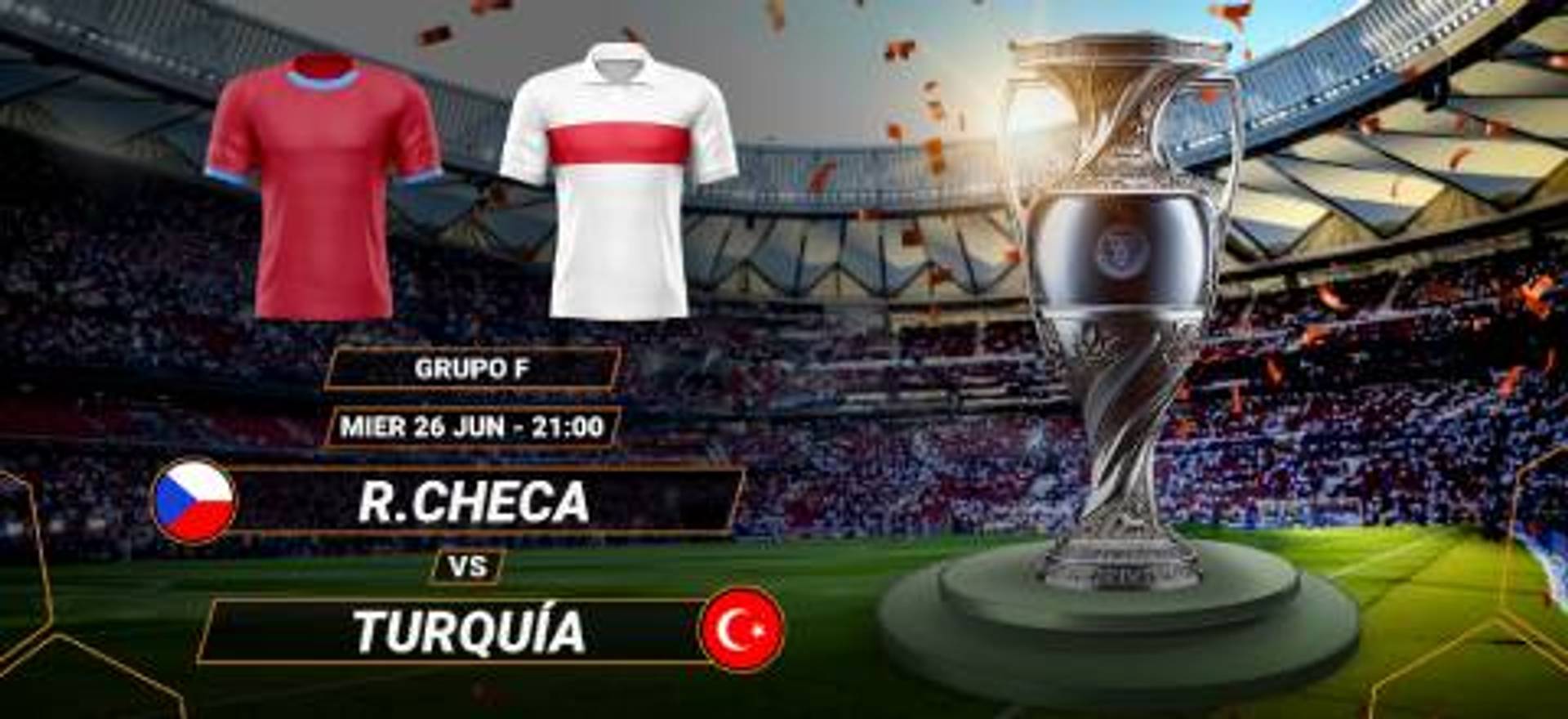 El República Checa-Turquía se jugará a las 21:00 horas del miércoles 26 de junio de 2024, a la misma hora que el otro partido del Grupo F, Georgia-Portugal.